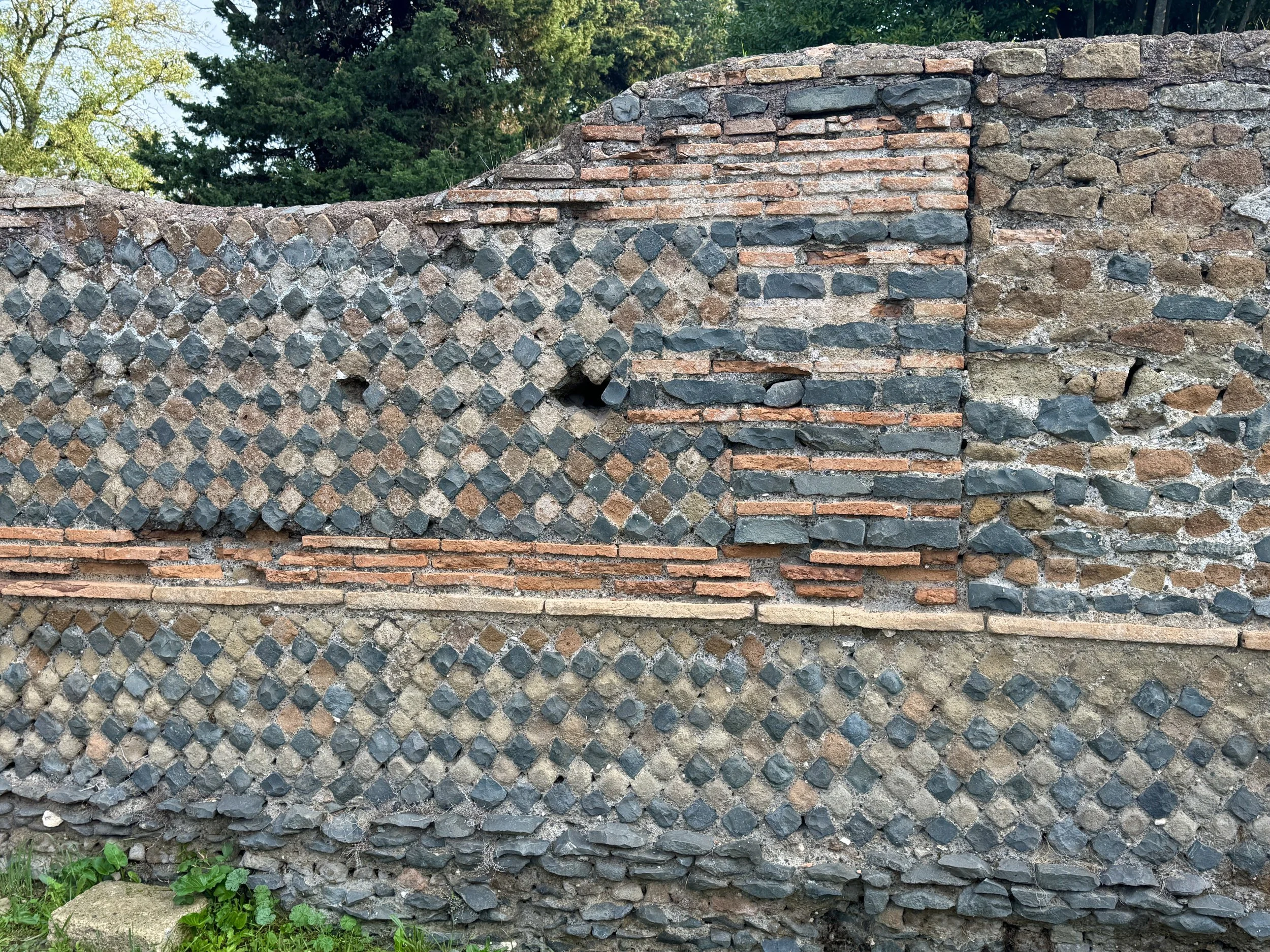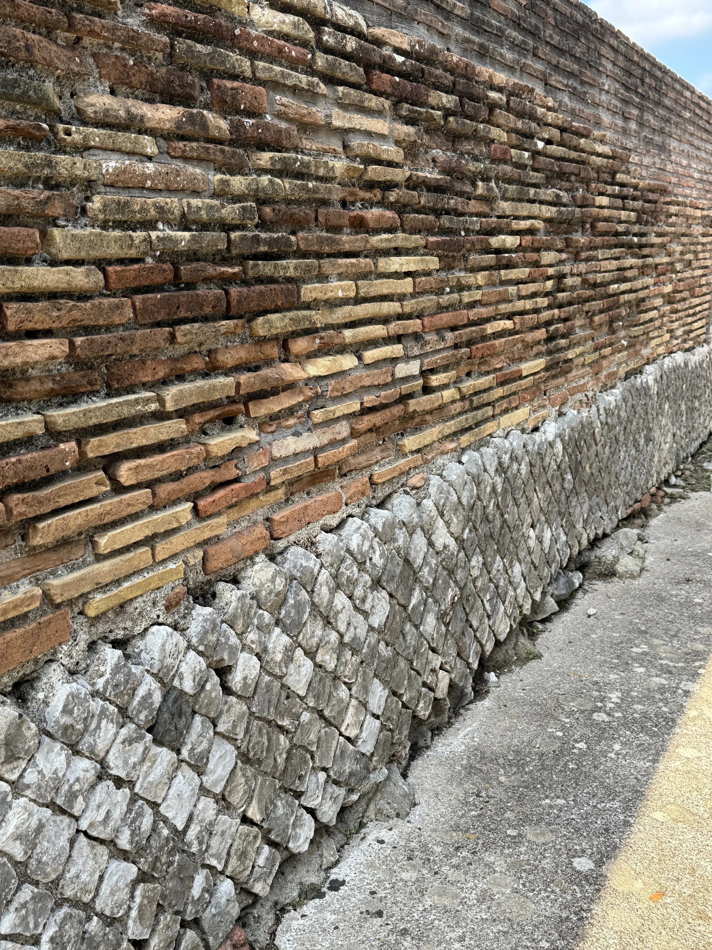 > Opus Mixum ( 1st - 4th century AD) combination of brick and reticulatum set into a concrete core. Examples from